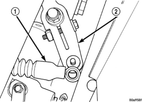 5. Disconnect gearshift cable (1)from manual valve lever(2).