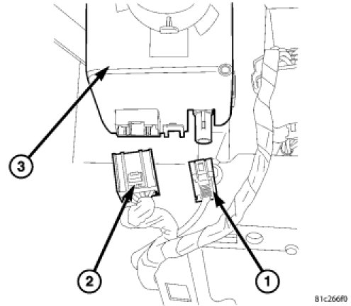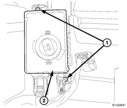1. Install wireless ignition node (WIN) (2) to instrument panel and install screws (1). Tighten screws to 2.5 Nm (22 in. lbs.).