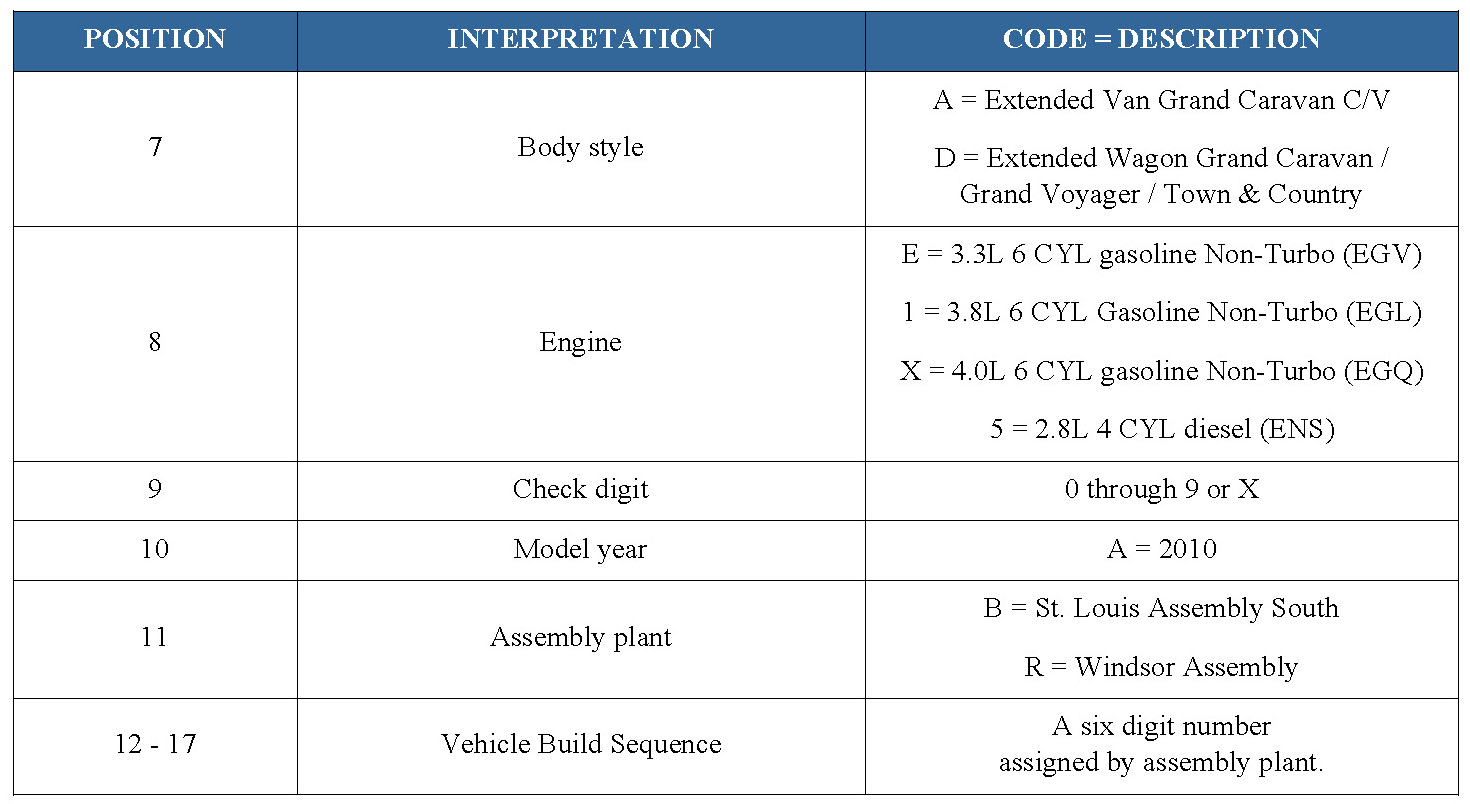 2010 VIN DECODING INFORMATION