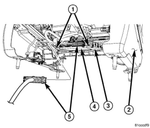 1. Place the Memory Seat Module (MSM) (4) into position making sure the mounting tabs (1) are properly aligned with the bracket (3).