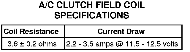6. Refer to the A/C Clutch Field Coil Specifications chart for the acceptable A/C clutch coil resistance. Specifications apply for a work area temperature of 21° C (70° F).