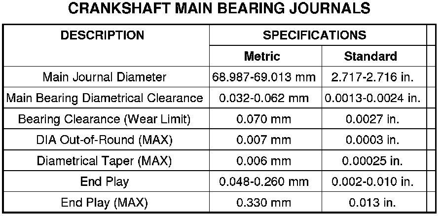 Crankshaft Main Bearing Journals: