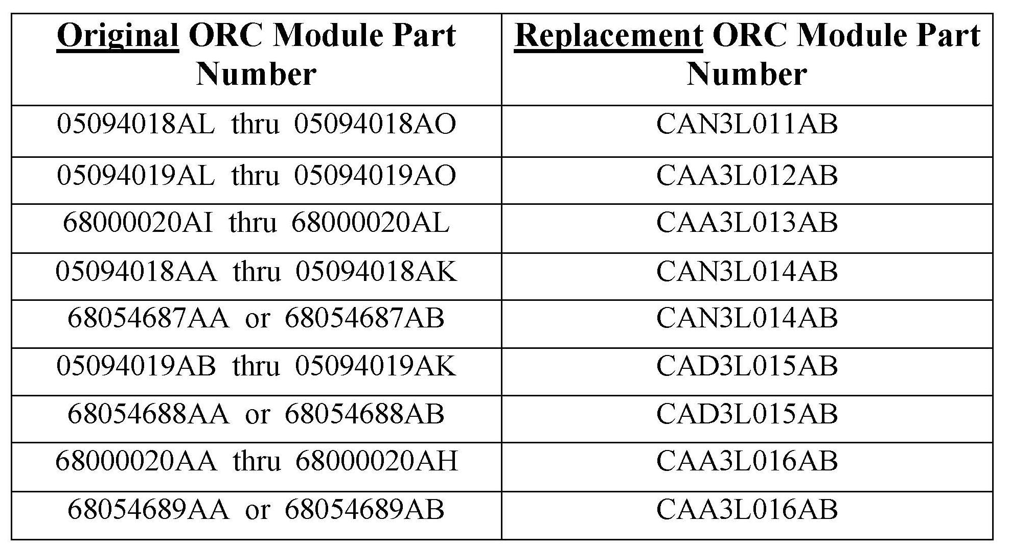 5. Use the chart below to determine which replacement ORC module to install. Then continue to Section B. Replace ORC Module.
