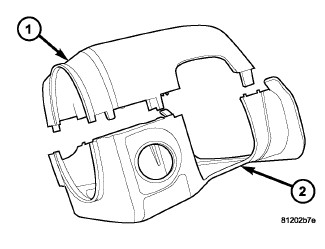 1. Remove the steering column opening cover (2).