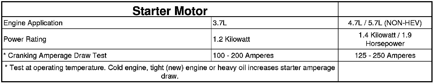 Starter Motor: Specifications