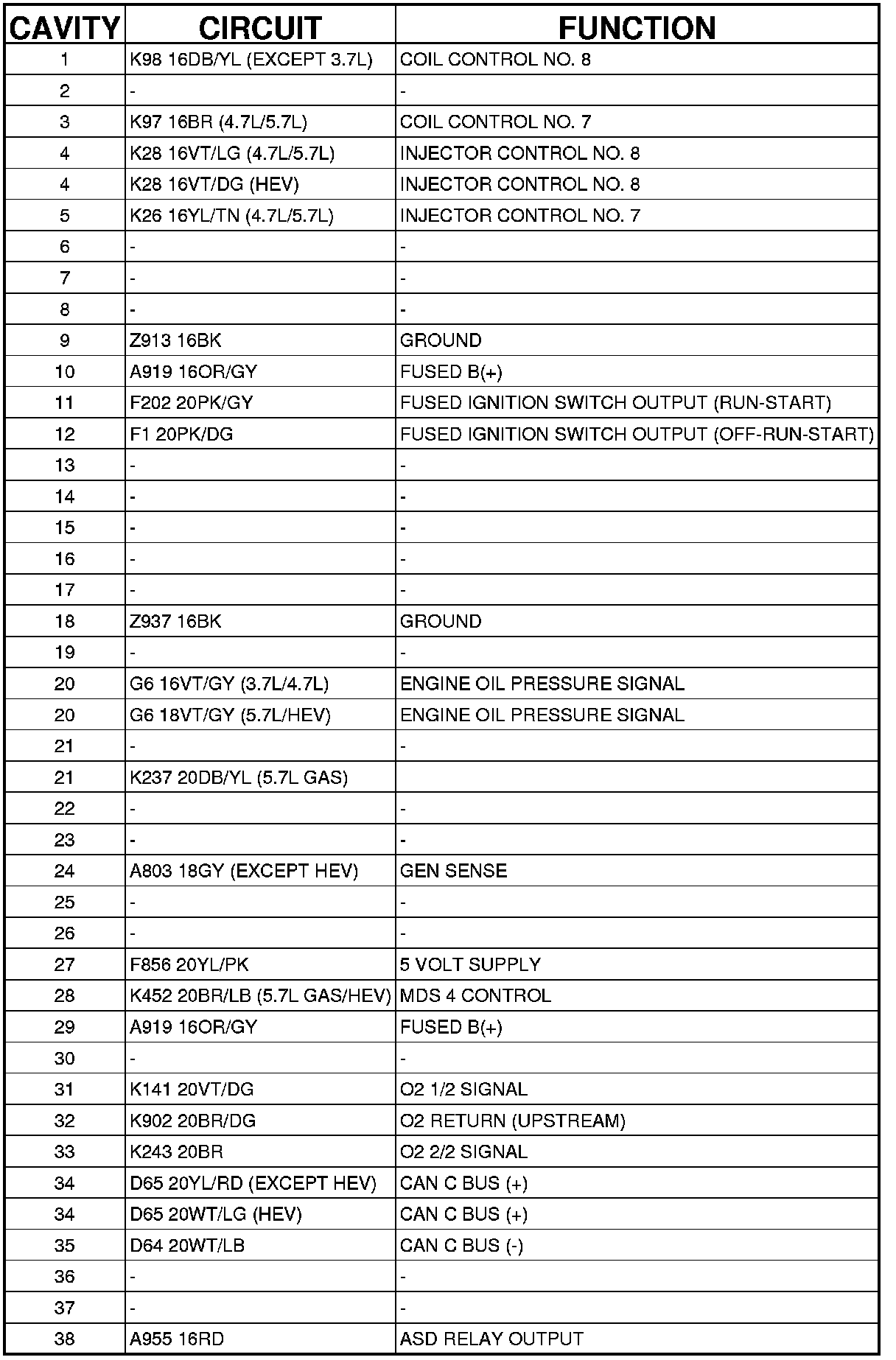 Connector C1 - (ENGINE) 38 WAY