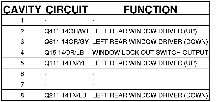 Left Rear Power Window Switch (Body) 8 Way