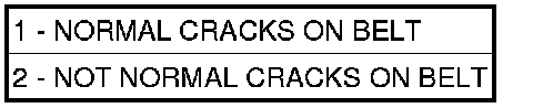 When diagnosing serpentine accessory drive belts, small cracks that run across the ribbed surface (1) of the belt from rib to rib, are considered normal. These are not a reason to replace the belt. However, cracks running along a rib (2) (not across) are not normal. Any belt with cracks running along a rib (2) must be replaced. Also replace the belt if it has excessive wear, frayed cords or severe glazing.