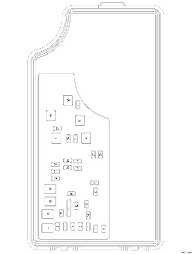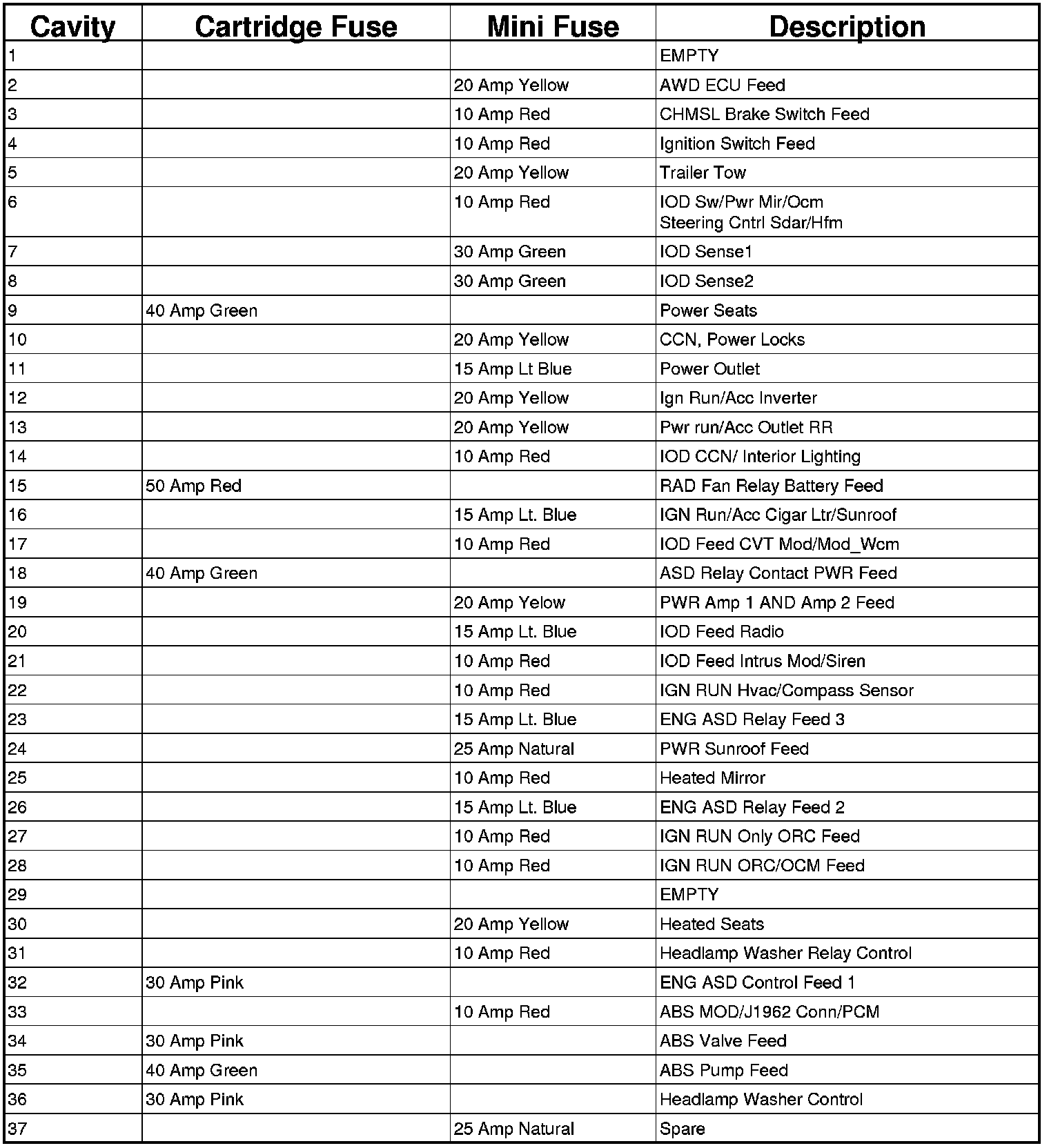 An Integrated Power Module is located in the engine compartment near the air cleaner assembly. This center contains maxi fuses and mini fuses. A label that identifies each component is printed on the inside of the cover.
