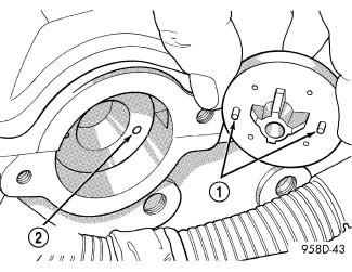 The target magnet has locating dowels (1) that fit into machined locating holes (2) in the end of the camshaft.