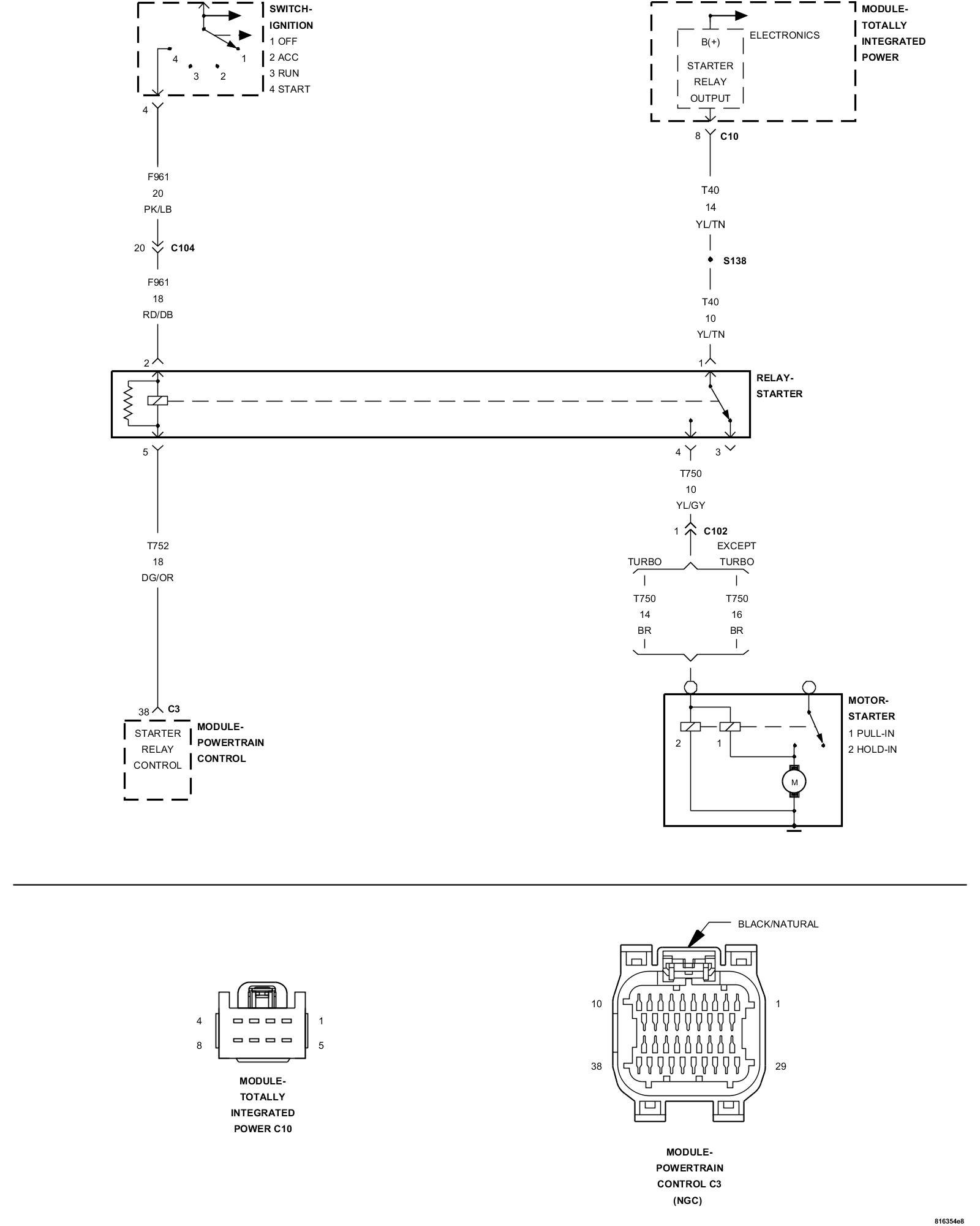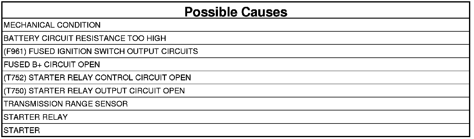 - Repair the open in the (T750) Starter Relay Output circuit.