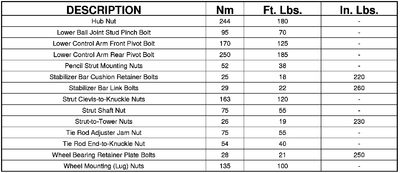 Front Suspension - Specifications