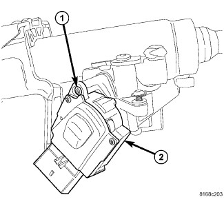 1. Pay close attention not to damage the detent pin in the lock cylinder housing when installing the ignition switch Position the ignition switch (1) as shown in order to clear the tilt lever (2).