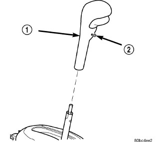 8. Install gearshift knob (1) and tighten set screw (2) to 2 Nm (17 in. lbs.) torque.