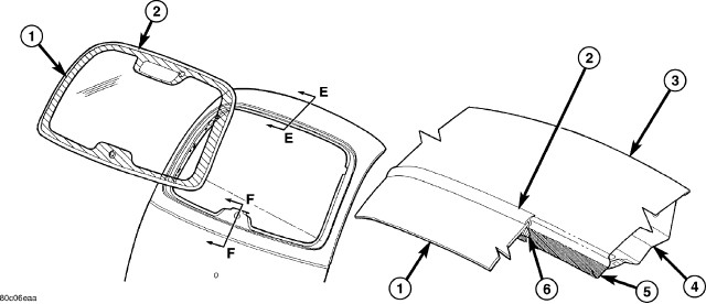 2. Apply a 10 mm (0.4 in.) bead of urethane around the perimeter of the glass (1).