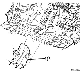 4. Install converter heat shield (1).