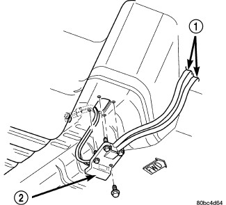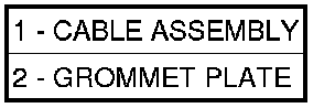 2. Install cable assembly through floor pan opening and secure to floor pan with grommet plate (2) and one screw. Make sure the three grommet plate studs protrude through cable assembly (1) and floor pan and tighten screw to 7 Nm (60 in. lbs.).