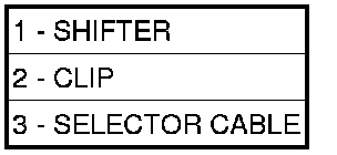 9. Install selector cable (3) to shifter lever and secure cable to shifter bracket. Install clip (2).
