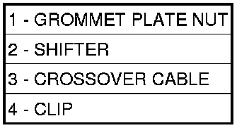10. Install crossover cable (3) to shifter lever and secure cable to shifter bracket. Install clip (4).