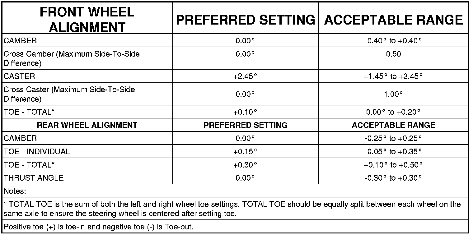 All wheel alignments are to be set with the vehicle at curb height.
