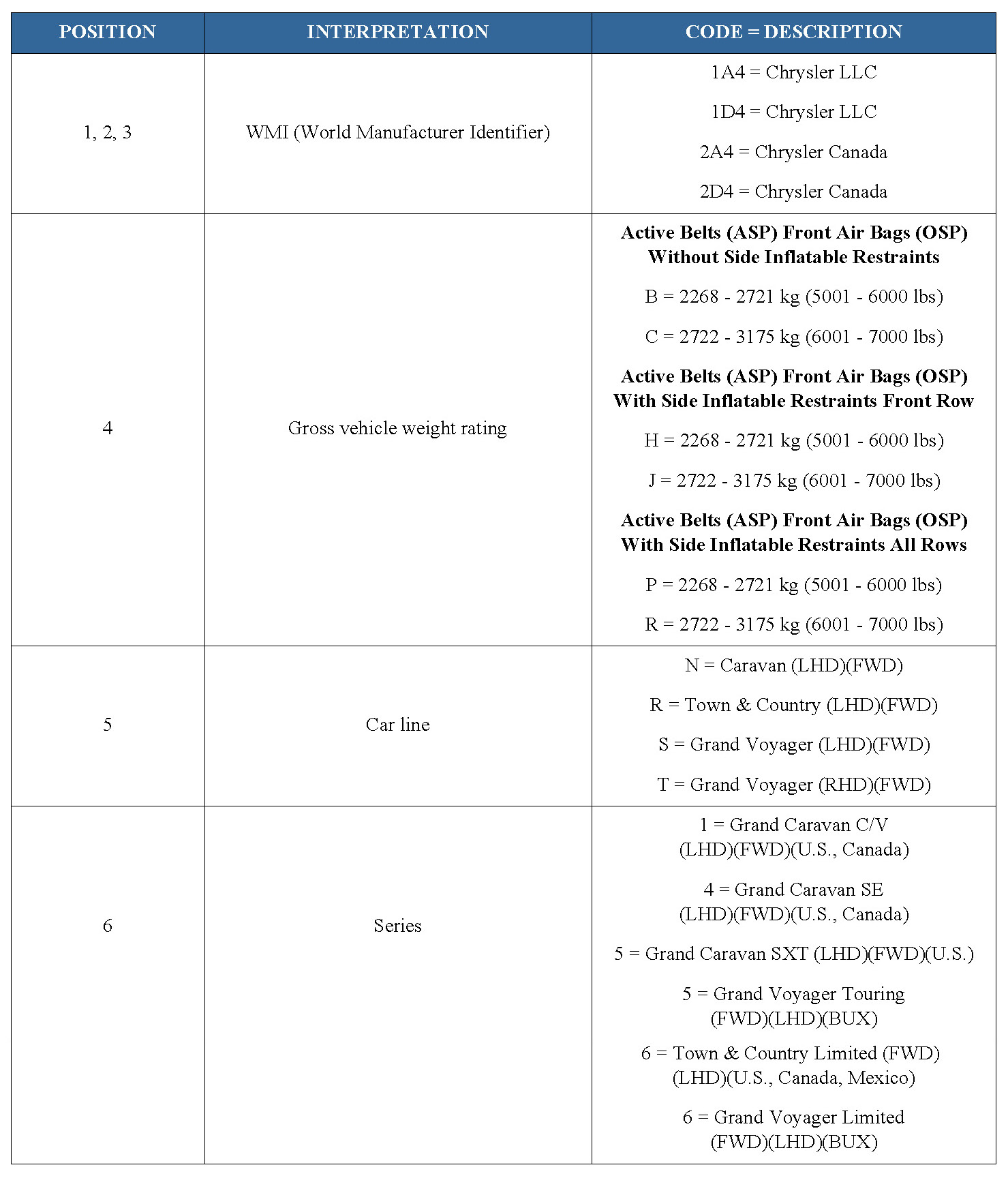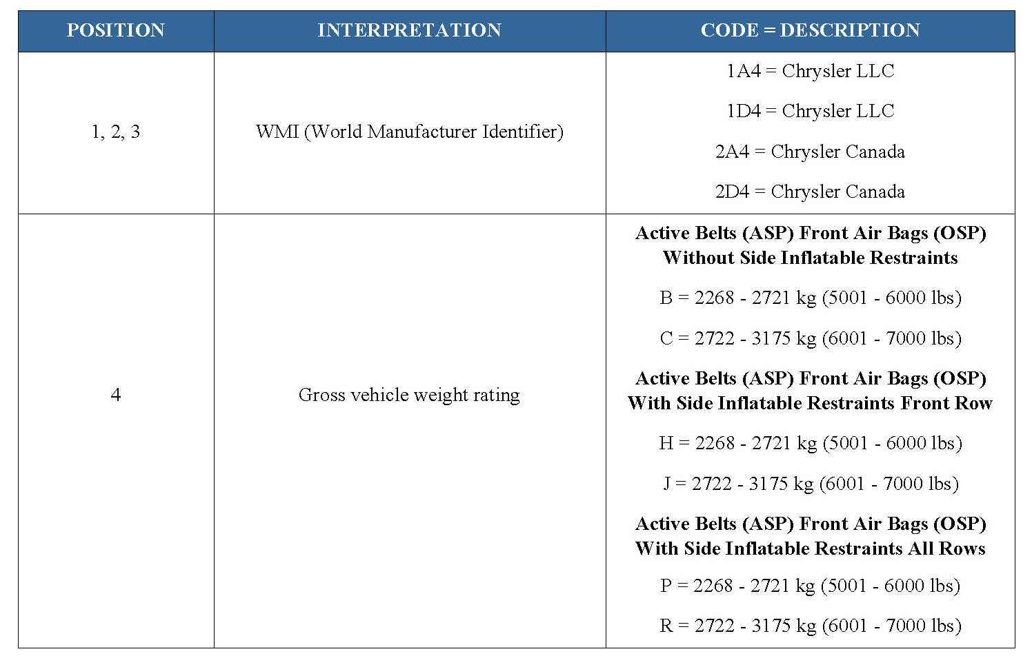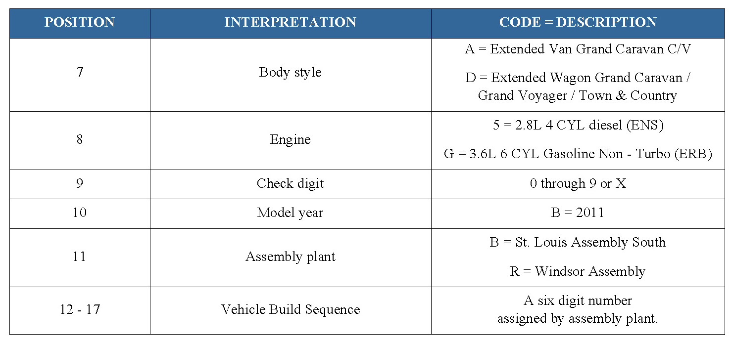 2011 VIN DECODING INFORMATION