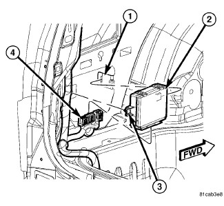 1. Position the power liftgate control module (2) into the vehicle.