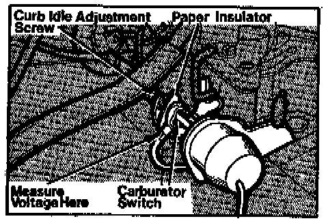 3. Place a piece of paper between curb idle adjusting screw and carburetor switch, see figure, or ensure curb idle adjusting screw is not contacting carburetor switch.