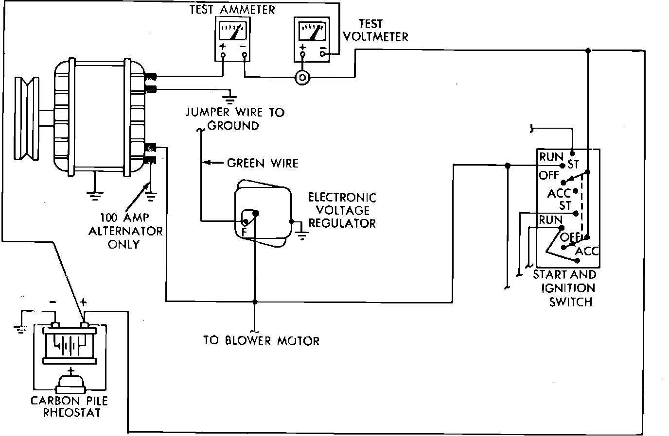 When testing alternators except 100 and 114 amp units, use a 0---100 amp ammeter. When testing 100 and 114 amp alternators, use a 0---150 amp ammeter.