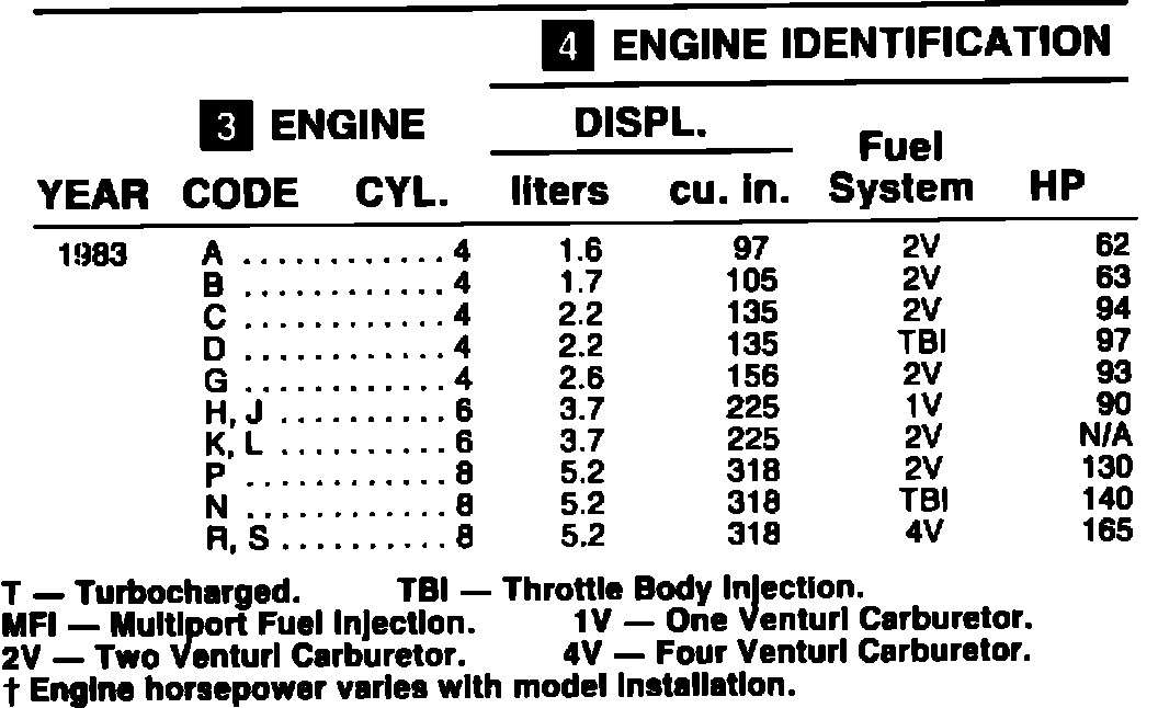 4 ENGINE IDENTIFICATION: On the line where the engine code appears, read to the right to identify the engine.