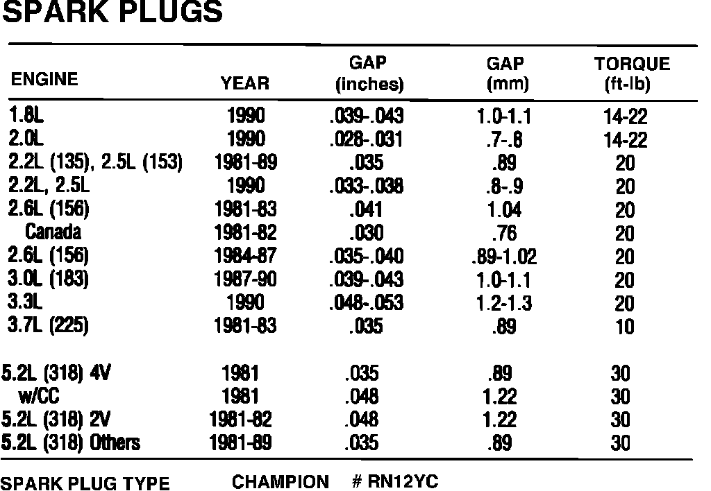 Spark Plug: Specifications