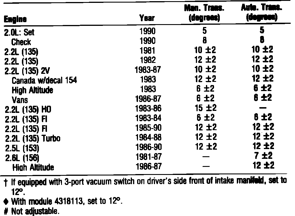 TIMING SPECS. 2.0L, 2.2L, 2.5L & 2.6L: