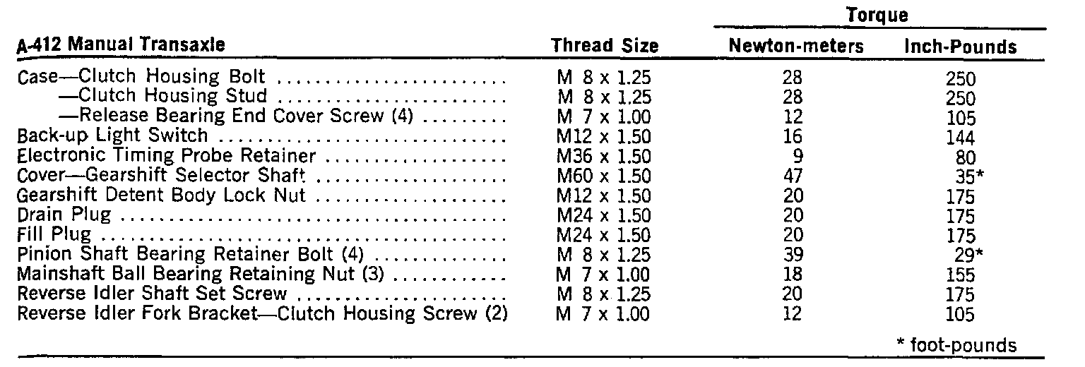 A-412 Torque Specifications: