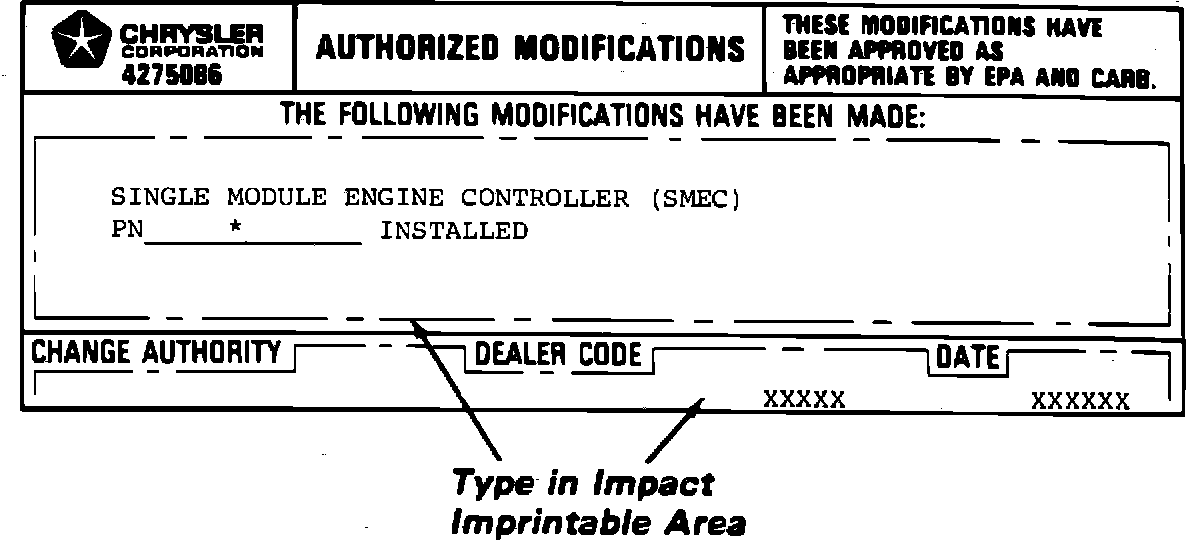 1 Authorized Modification Label PN 4275086