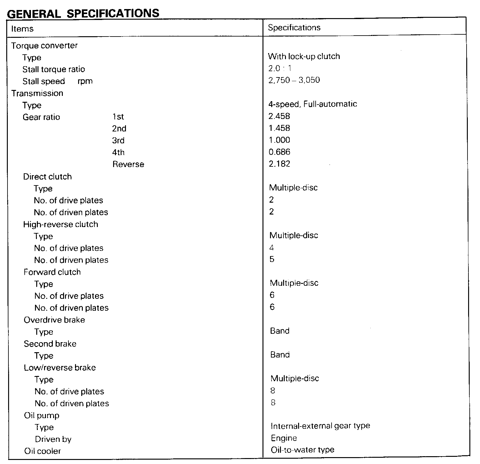 General Specifications: