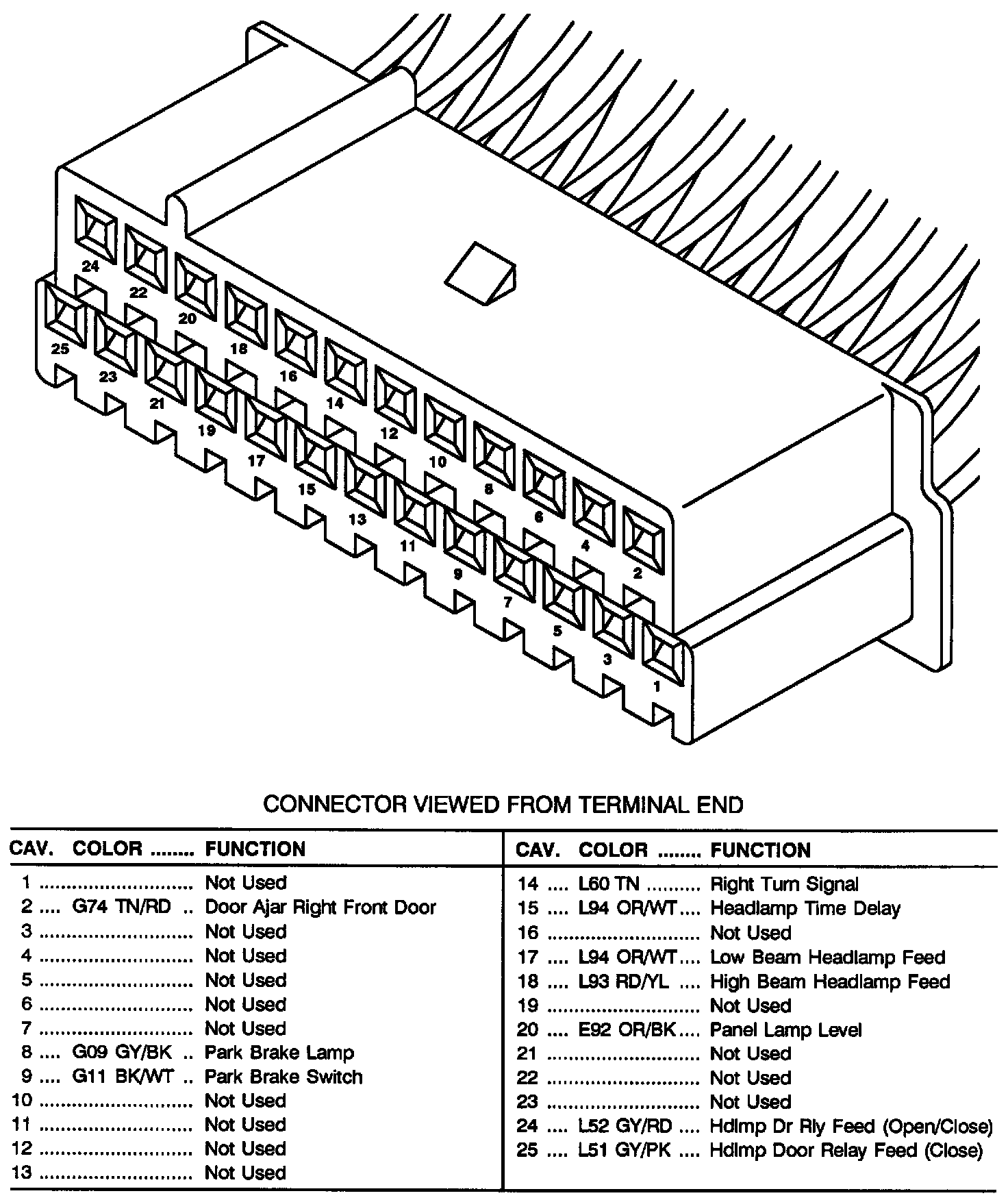 Connector viewed from terminal end
