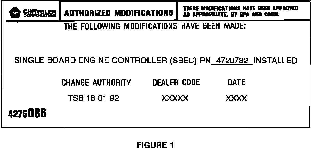 2. Remove the SBEC as outlined in the Service Manual, and install the revised SBEC.