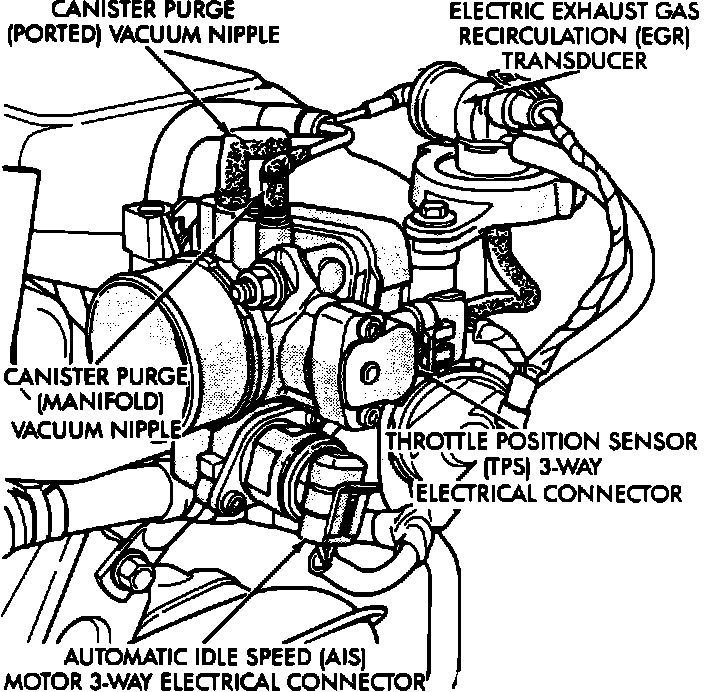 7. If engine rpm does not drop when vacuum is applied to the EGR vacuum diaphragm, then a defective EGR valve or plugged EGR passage, or tube is indicated. The EGR valve, intake manifold passage, and tube assembly should be removed, inspected, and cleaned or replaced. Refer to MAINTENANCE PROCEDURES for cleaning and inspection procedures for the EGR valve and passages.