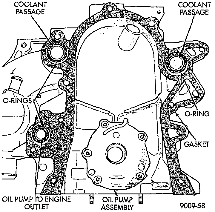 1. Be sure mating surfaces of chain case cover and cylinder block are clean and free from burrs. Crankshaft oil seal must be removed to insure correct oil pump engagement.