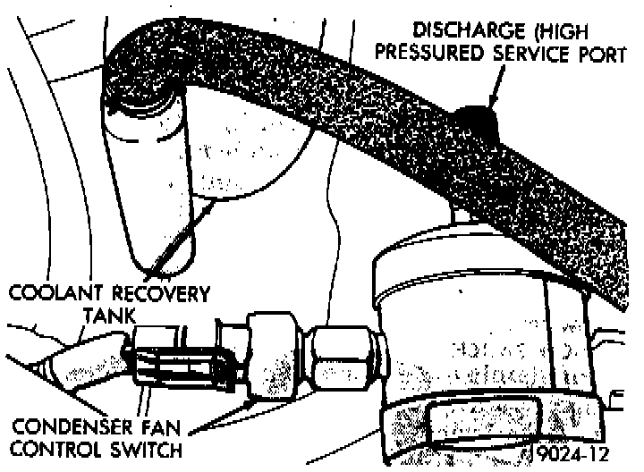CAUTION: A small amount of refrigerant could vent from the switch port. Review precautions and warnings.