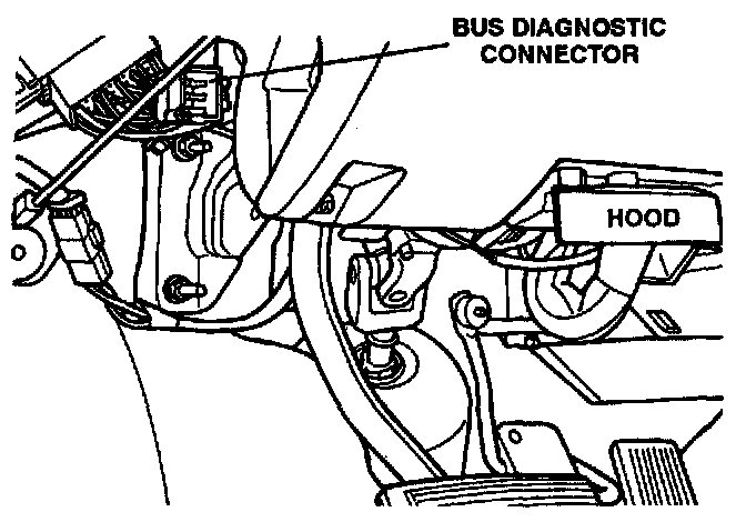 A. Connect the DRBII to the vehicle by plugging the DRBII connector into the CCD bus diagnostic connector. This connector is located under the dash to the left of the steering column.