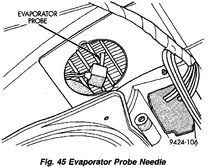 1. Install new probe into the evaporator. The new probe must not go into the same hole (in the evaporator core) that the old probe was removed. The evaporator is manufactured with three holes for probe insertion. Insert the probe in the uppermost hole.