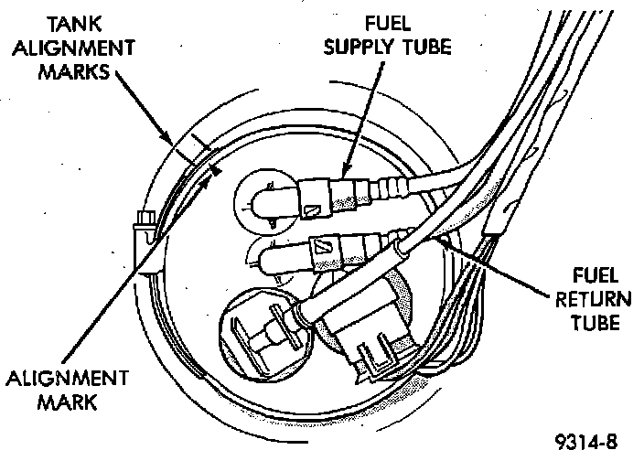 6. Disconnect Fuel supply and return hoses from fuel pump module.