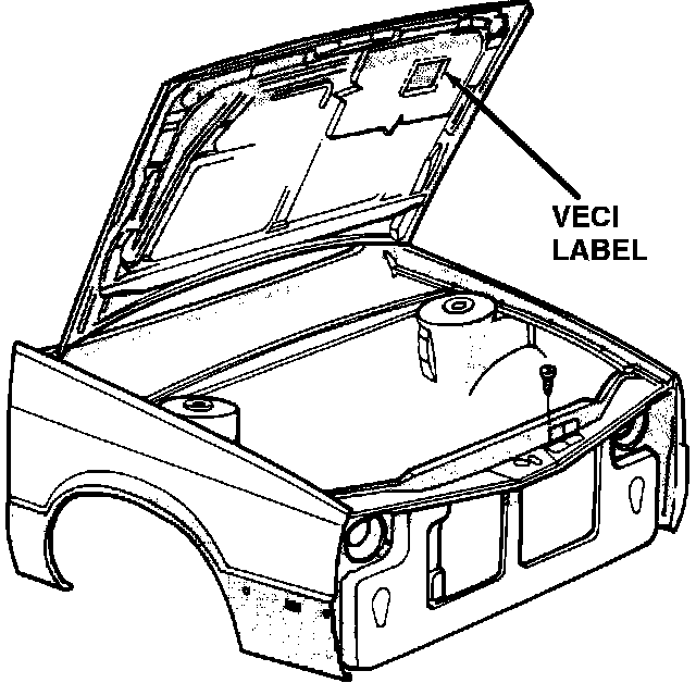 Vehicle should have a Vehicle Emission Control Information (VECI) label, permanently attached, under the hood (see Fig. 1). (Label cannot be removed without defacing information and destroying label.)