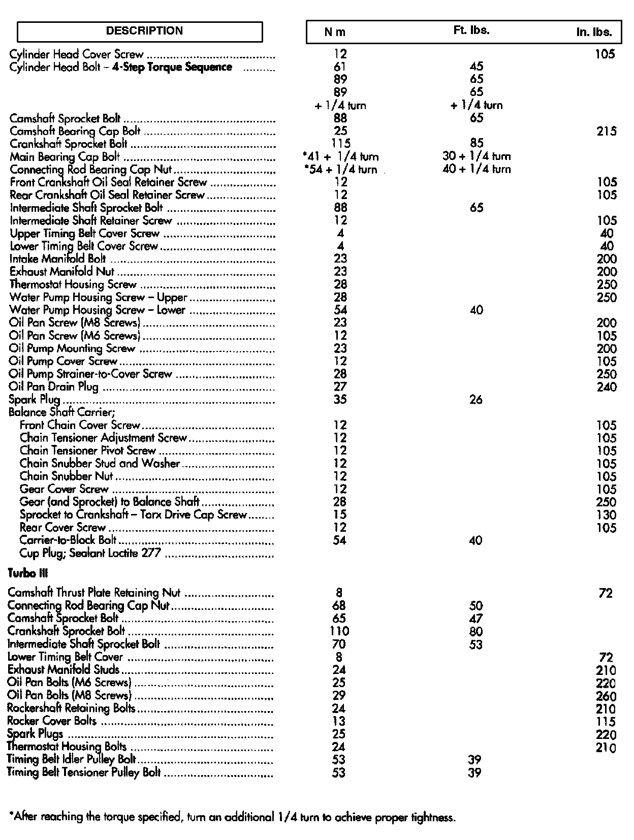 Tightening Specifications