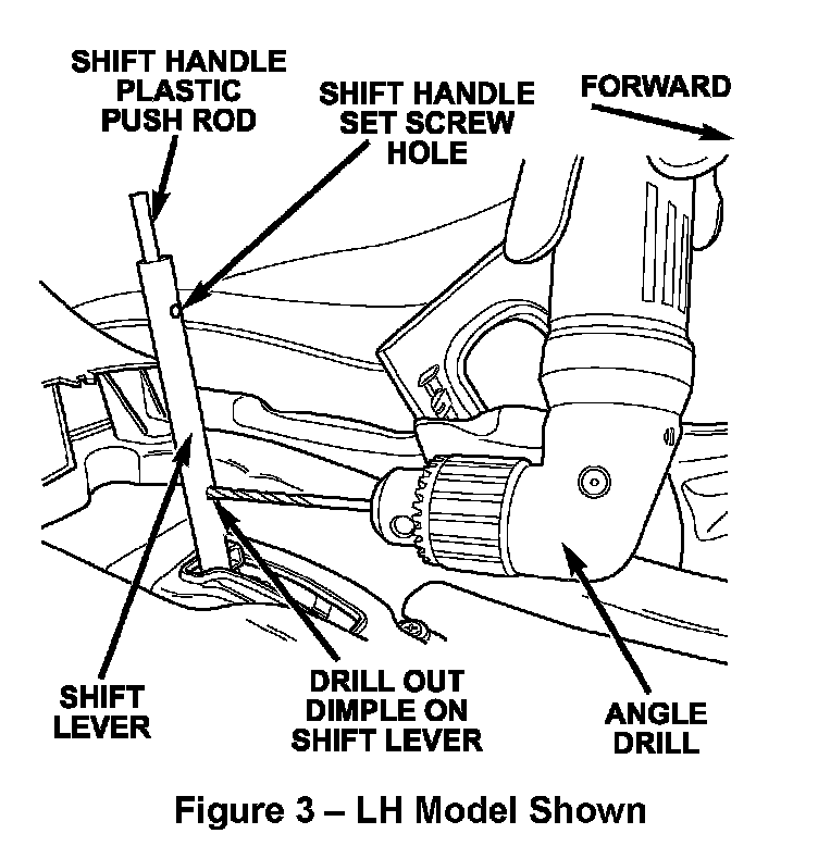 8. Locate the shift lever push rod retaining dimple (Figure 3). Most vehicles will have the dimple on the front side of the shift lever.