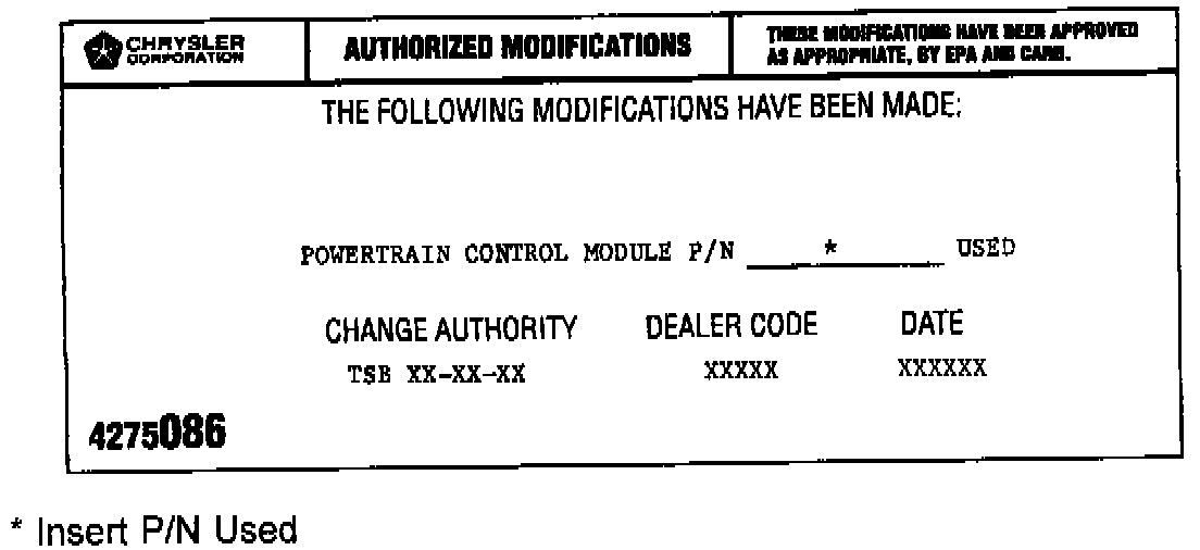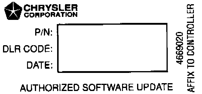 9. Type the necessary information on the "Authorized Software Update" label, P/N 4669020. Attach the label to the PCM and cover the label with the clear plastic overlay.