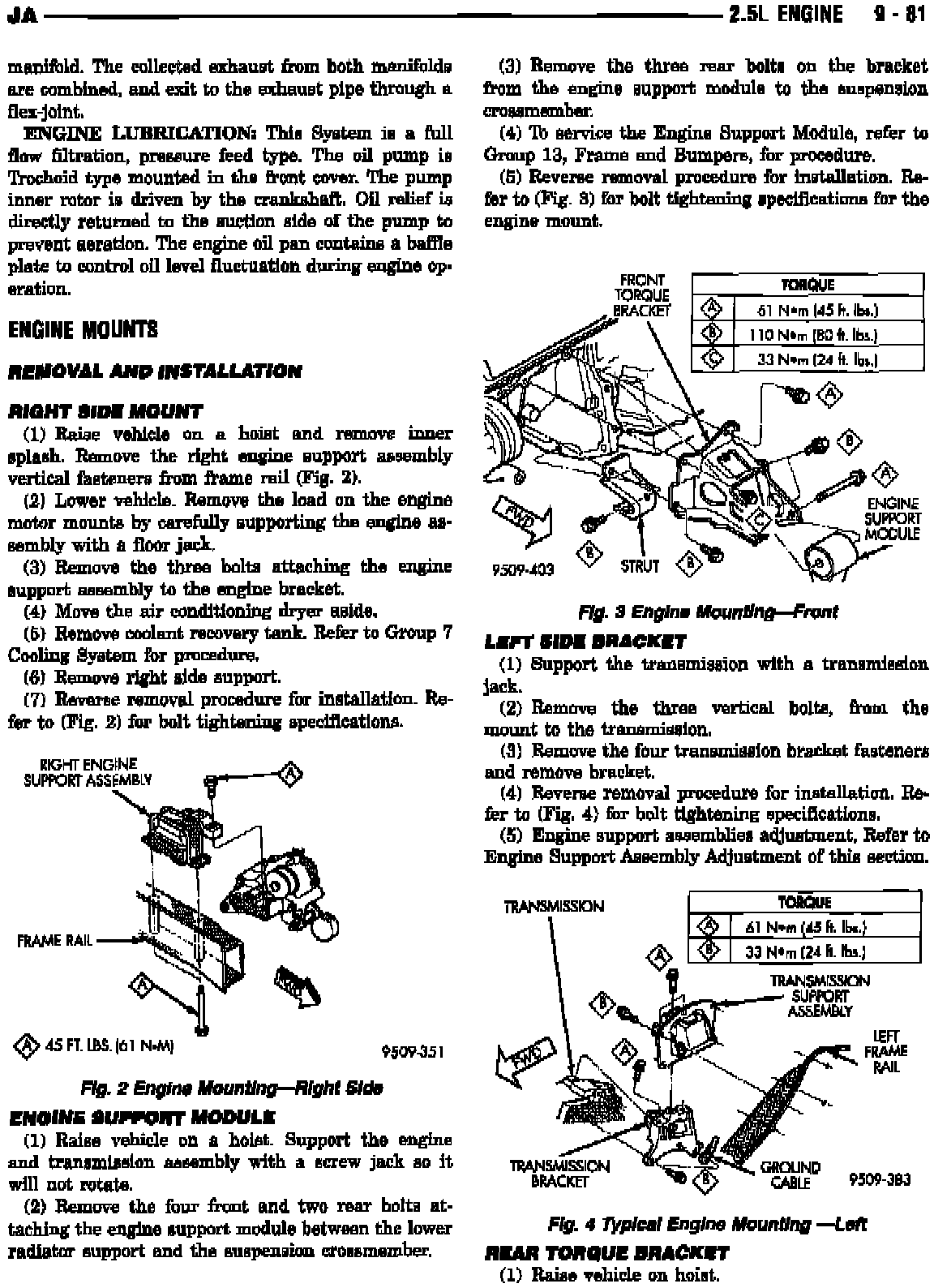 This Technical Service Bulletin contains revised Service Manual pages. The engine mounts and corresponding service procedures have changed.