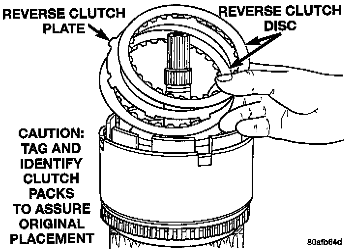 NOTE: Tag reverse clutch pack for reassembly identification.