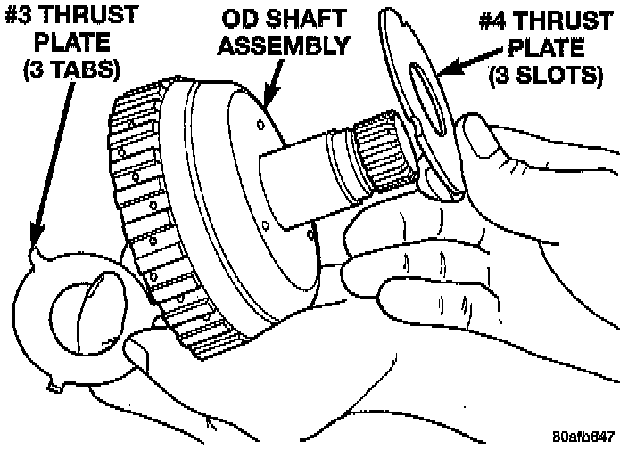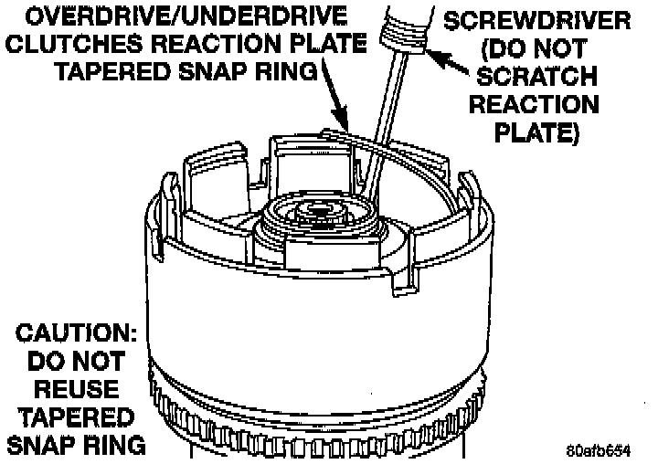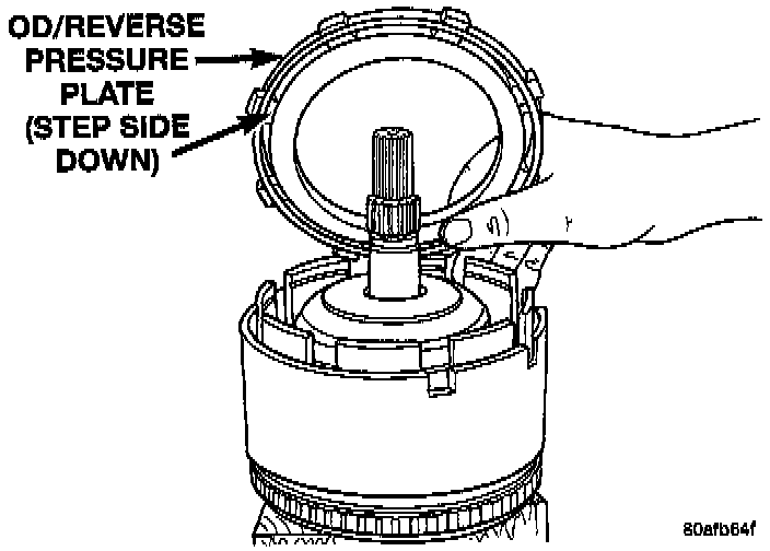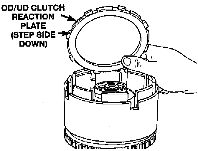 NOTE: The OD/UD clutches reaction plate has a step on both sides. Install the OD/UD clutches reaction plate tapered step side up.