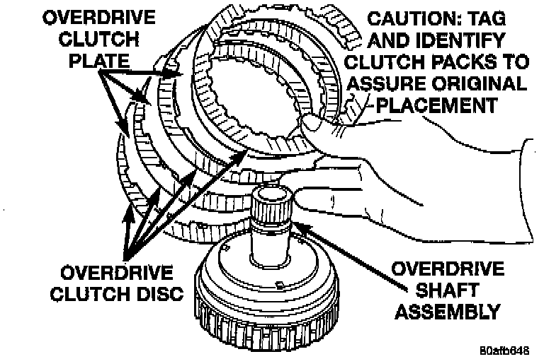 NOTE: Tag overdrive clutch pack for reassembly identification.